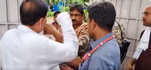 भिंड से भाजपा विधायक नरेंद्र सिंह कुशवाह ने कलेक्टर बंगले के बाहर धरना प्रदर्शन के दौरान कलेक्टर की तरफ हाथ उठाते हुए गाली देते हुए धमकी दी। नरेंद्र कुशवाह कलेक्टर बंगले के बाहर विधायक धरना दे रहे थे, जब कलेक्टर संजीव श्रीवास्तव ने बाहर आकर प्रदर्शनकारियों से मिलने से इनकार किया था। बाद में वे गेट के पास खड़े होकर विधायक से बात कर रहे थे। इसी दौरान कलेक्टर को खरी खोटी सुनाते हुए कुशवाह ने गाली दी और मारने के लिए हाथ भी उठाया। मौके पर मोजूद सुरक्षा गार्डों ने बीच बचाव किया। इस दौरान कलेक्टर कह रहे हैं कि चोरी नहीं चलने दूगा, वहीं विधायक बोले- तू है सबसे बड़ा चोर..। बता दें इससे पहले भिंड में आईपीएस के साथ भी मारपीट हो चुकी है।