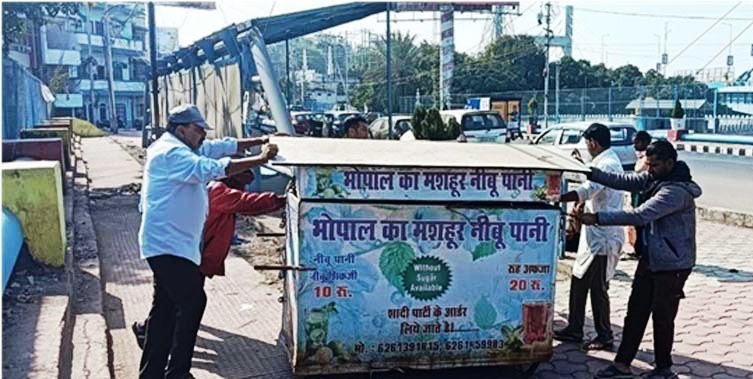 भोपाल। नगर निगम द्वारा शहर के विभिन्न क्षेत्रों में अतिक्रमणों एवं अवैध निर्माणों को हटाने की कार्यवाही निरंतर जारी है। इसी तारतम्य में निगम के अतिक्रमण निरोधक दस्ते के दलों ने सीएम हेल्प लाईन, कॉल सेंटर व अन्य माध्यमों से प्राप्त शिकायतों के निराकरण तथा निगम की नियमित कार्यवाही के तहत शहर के विभिन्न क्षेत्रों से बड़ी संख्या में ठेले, गुमठी, काउंटर, पान पार्लर, बोर्ड के अलावा अवैध रूप से निर्मित टपरा, सीवेज लाईन पर अवैध रूप से किये गये निर्माण तथा सड़कों, फुटपाथों पर अतिक्रमण कर लगाई गई सब्जी, कंबल, मछली की दुकानें, दुकानों के बाहर रखा सामान आदि हटाया और 05 ठेले जप्त किए।