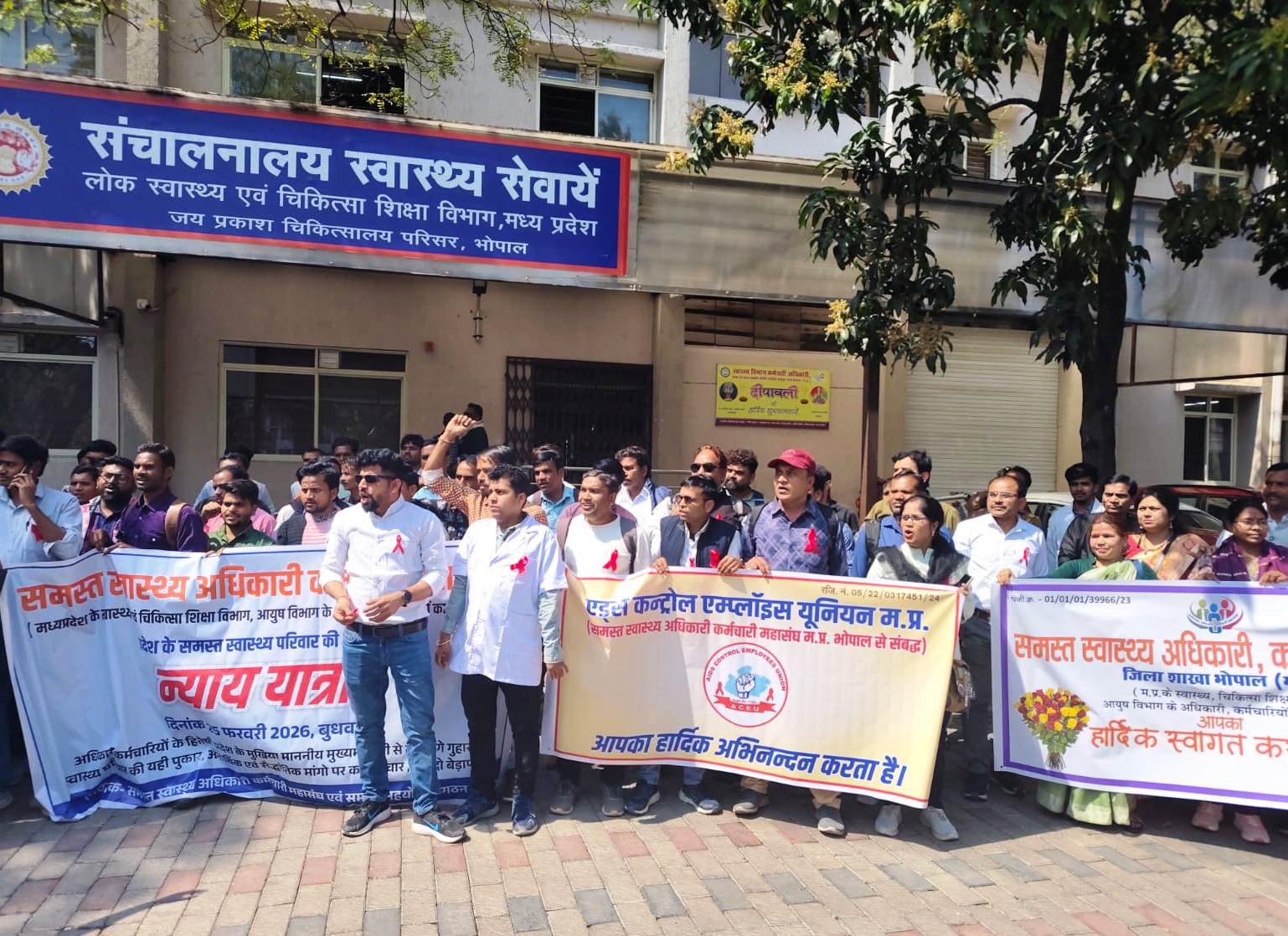 भोपाल। मध्यप्रदेश कि राजधानी भोपाल मे समान कार्य, समान वेतन देने एवं नियमित करन की मांग को लेकर एड्स कन्ट्रोल एम्लाईज युनियन मध्यप्रदेश ने प्रदर्शन कर निकाली न्याय यात्रा। एच.आई.वी./एड्स के क्षेत्र में 24 वर्षो से अधिक समय से सेवारत समस्तप संविदा अधिकारी एवं कर्मचारी प्रदेशाध्य क्ष् श्री सुरेन्द्रत सिंह कौरव समस्ता स्वावस्य् क अधिकारी- कर्मचारी महासंघ के आव्हानि पर एड्स कन्ट्रोल एम्लाईज युनियन म.प्र. सम्मलित होकर जयप्रकाश चिकित्साहलय परिसर स्वास्थ्य संचालनालय भोपाल में 25 फरवरी 2026 जुड़कर प्रदर्शन कर न्याय यात्रा निकाली गई। तत्का्लीन मुख्य मंत्री शिवराज सिंह चौहान ने प्रदेश के संविदा अधिकारियों एवं कर्मचारियों को एक नीति बना कर नियमित किये जाने की घोषणा की थी। जिसके तहत प्रदेश एवं स्वास्थ्य विभाग में सभी संविदा अधिकारियों एवं कर्मचारियों को उक्त नीति के तहत नियमितीकरण का लाभ दे दिया गया पर म.प्र.राज्या एड्स नियंत्रण समिति में कार्यरत समस्त संविदा अधिकारियों एवं कर्मचारियों को यह कहकर छोड़ दिया गया कि एड्स नियंत्रण कार्यक्रम का समस्तव बजट केन्द्र सरकार देती है इसलिए एड्स के क्षेत्र में कार्यरत संविदा अधिकारियों एवं कर्मचारियों को उक्त नीति का लाभ नहीं दिया जा सकता है। जबकि राज्यम एड्स नियंत्रण समिति का संचालन प्रदेश सरकार करती है। हम सभी संविदा अधिकारी एवं कर्मचारी प्रदेश के नागरिकों के लिए एच.आई.वी./एड्स से बचाने का कार्य कर रहे है। एच.आई.वी.पाजिटिव लोगों को जीवन जीने की कला सिखा रहे है। हमारे प्रयासों से उनके जीवन जीने की अवधि में सुधार हुआ है पर हम सभी का भविष्यए अंधकार में है।