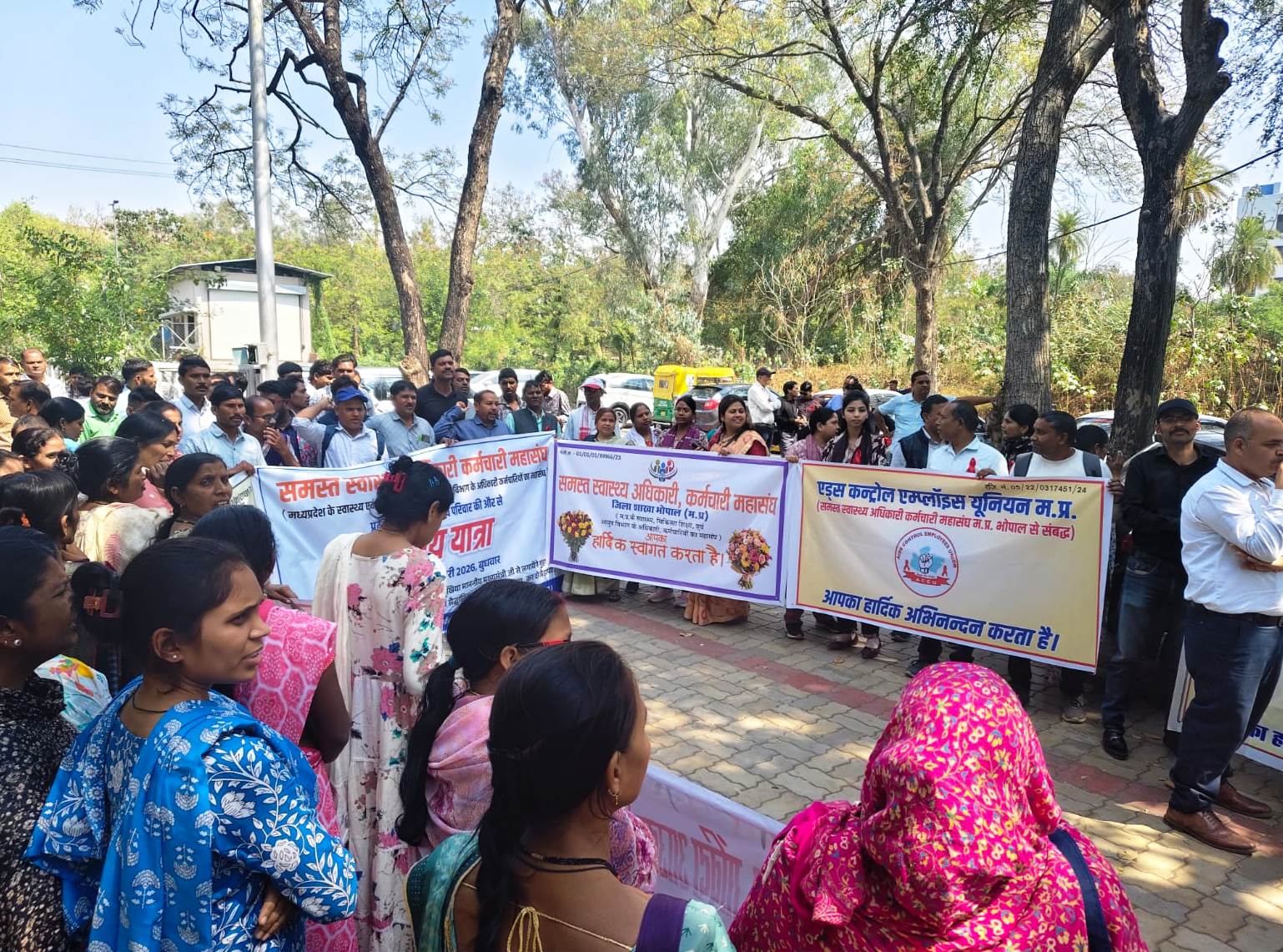 संविदा अधिकारी एवं कर्मचारी द्वारा समान कार्य, समान वेतन देने एवं नियमित करन की मांग को लेकर एड्स कन्ट्रोल एम्लाईज युनियन ने मध्यप्रदेश कि राजधानी भोपाल मे किया प्रदर्शन कर निकाली न्याय यात्रा